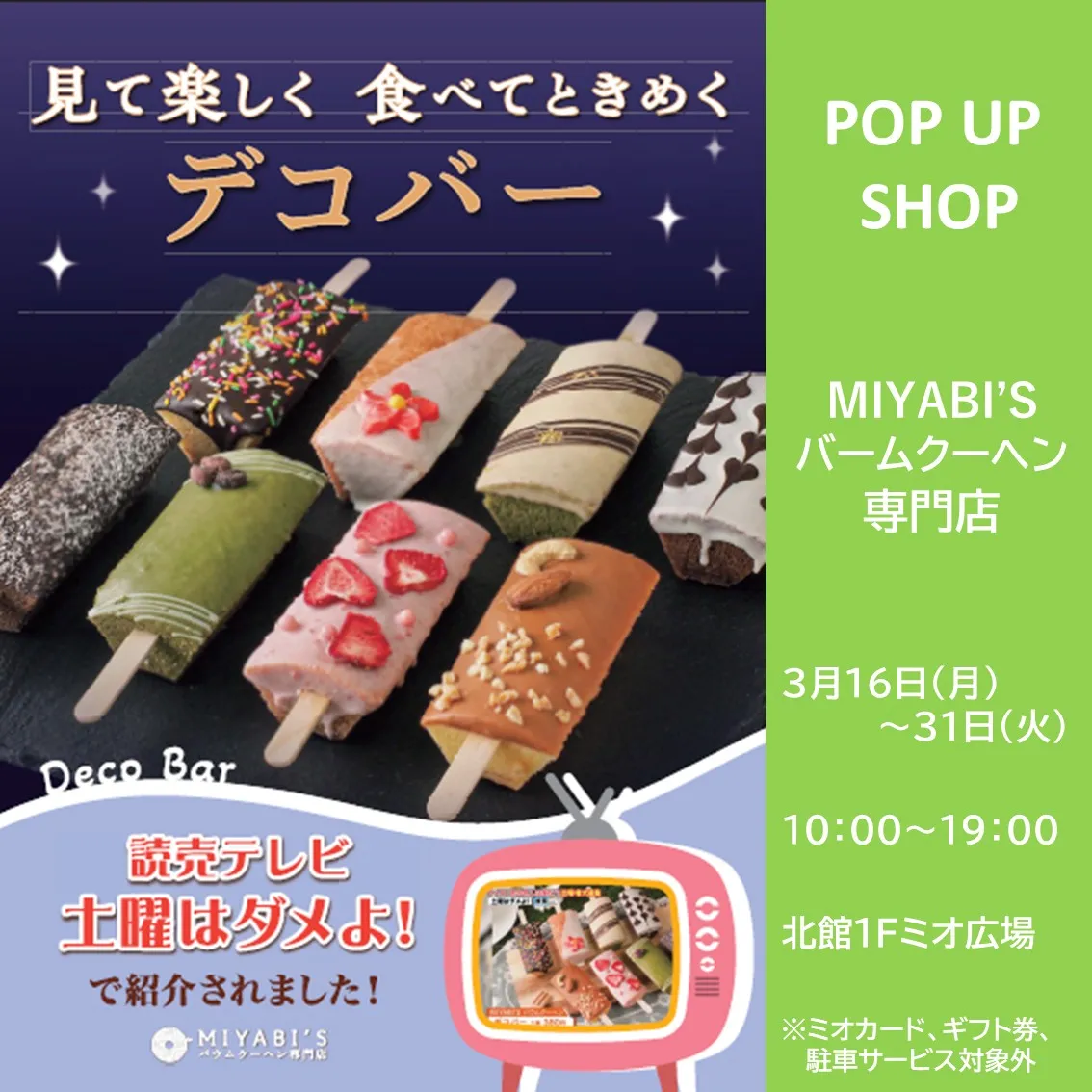 【備考】ミオカード、ギフト券、駐車場サービス対象外