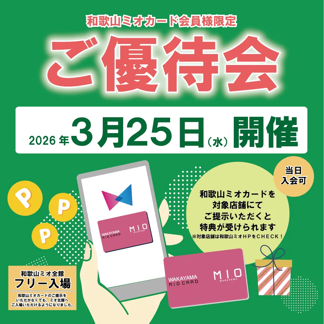 歌山ミオカード会員様限定ご優待会3月25日(水)開催!