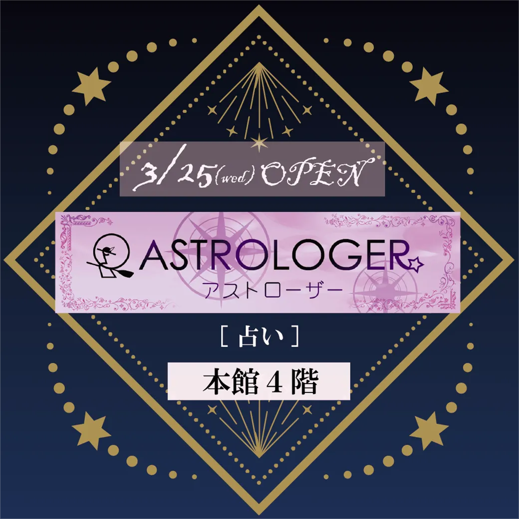 占いショップ「アストローザー」が和歌山ミオに初出店します。アストローザーは、さまざまな占術を通じて、お客様のこれからのヒントを見つけるお手伝いをする占い店です。占い師による鑑定を通じて、日々の生活の前向きな気づきをご提案します。