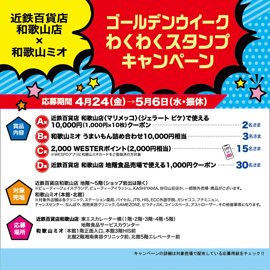 【和歌山ミオ×近鉄百貨店 】ゴールデンウィークわくわくスタンプキャンペーン開催!