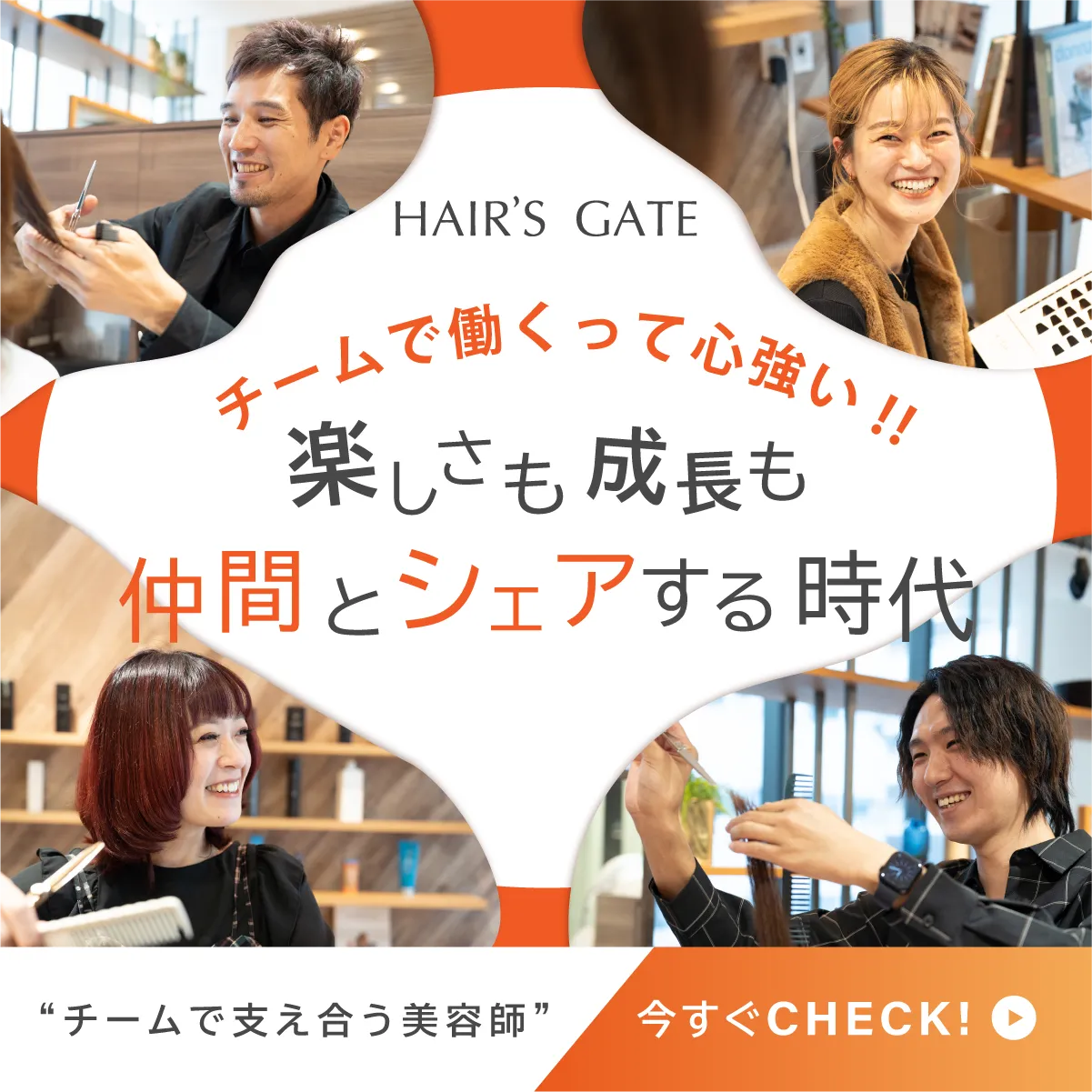 - "ヘアーズゲートは、『頑張りがきちんと評価される』『スタッフみんなが助け合う』『笑顔が自然に循環する』チームサロンです